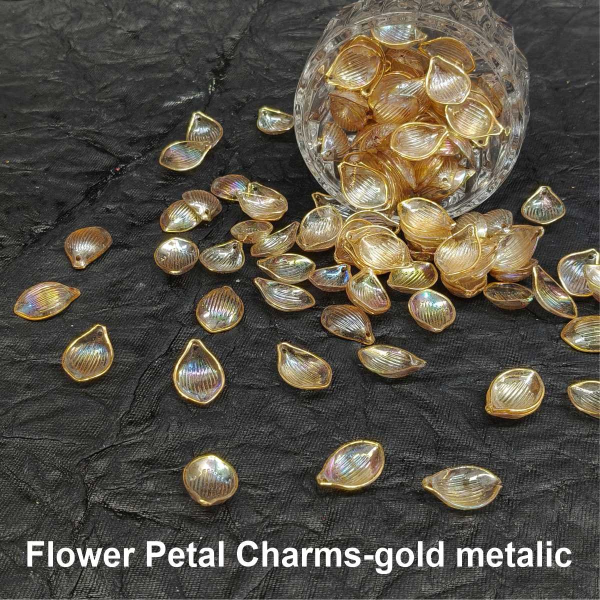 Add a touch of elegance and shine to your craft projects with these gold metalic flower petal charms. Designed with a clear base and golden outline, these charms resemble delicate petals, making them ideal for floral-themed art. They are lightweight, easy to use, and versatile for multiple DIY creations. Whether you are making resin keychains, jewelry, scrapbooks, or home décor pieces, these charms bring a sparkling finish to your artwork.