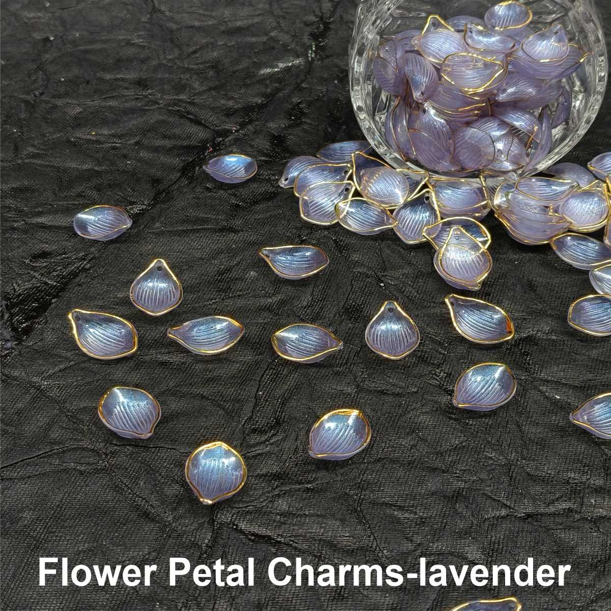 Add a touch of elegance and shine to your craft projects with these  lavender flower petal charms. Designed with a clear base and golden outline, these charms resemble delicate petals, making them ideal for floral-themed art. They are lightweight, easy to use, and versatile for multiple DIY creations. Whether you are making resin keychains, jewelry, scrapbooks, or home décor pieces, these charms bring a sparkling finish to your artwork.