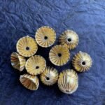 Elevate your handmade crafts and traditional decorations with our Gota Katori round medium – a beautiful embellishment designed to bring texture, shimmer, and cultural charm to any artistic creation. These round -shaped embellishments are made using premium quality golden gota fabric, intricately folded and stitched into a 3D cone or katori shape, perfect for adding festive flair to your DIY projects.