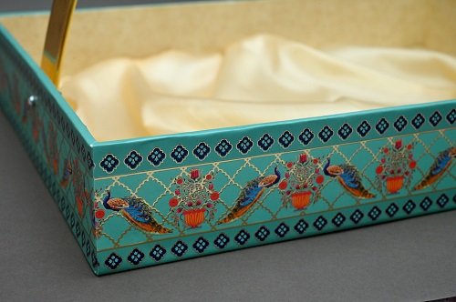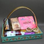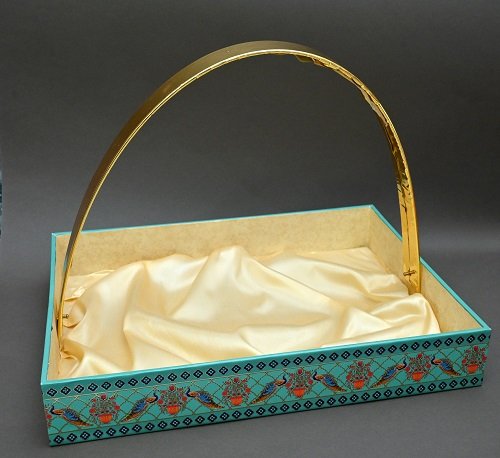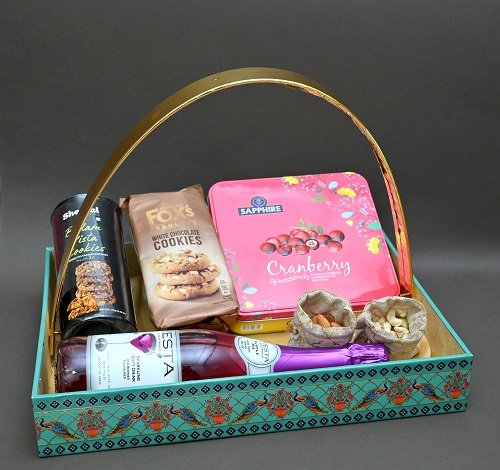 Add elegance to your festive gifting with this Decorative Hamper Basket Green featuring a golden metallic handle and beautifully printed floral & bird-themed box. Perfect for presenting dry fruits, chocolates, cookies, and gourmet snacks, this reusable and eco-friendly basket enhances the value of your gifts for any occasion — weddings, Diwali, Raksha Bandhan, corporate events, or birthdays.